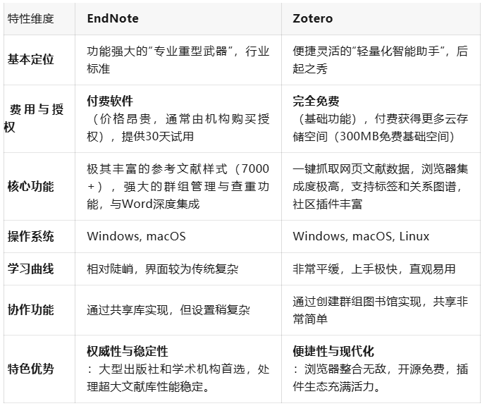 一 、核心对比:EndNote 与 Zotero的巅峰对决