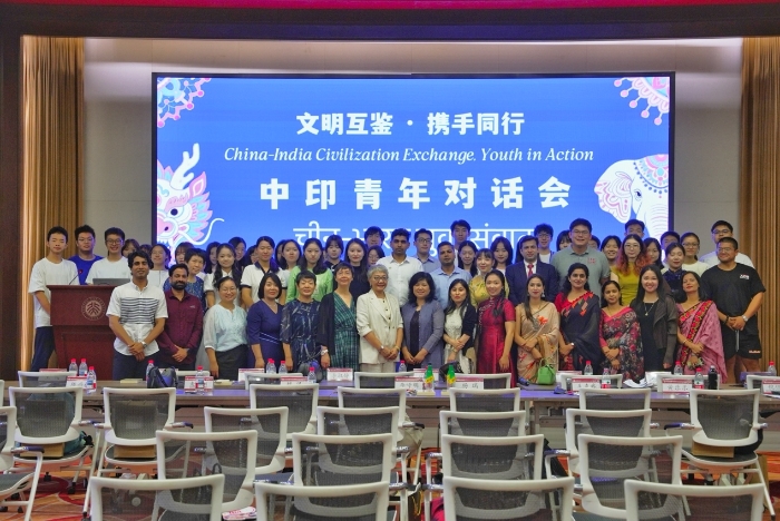 2025年8月30日,“文明互鉴·携手同行——纪念中印建交75周年”青年对话会在北京大学民主楼208会议室举行。本次活动由北京大学外国语学院、中央广播电视总台亚非中心共同举办,北大印度研究中心协办。来自中央广播电视总台、北京大学、北京外国语大学、中国传媒大学、北京第二外国语大学、国家发展和改革委员会、中国画报社等单位的近百名师生、青年学者、媒体人士和各行业中印青年代表参会。活动由总台亚非中心印地语部副主任朱晶晶、外籍专家巴科(AKHIL PARASHAR)主持。