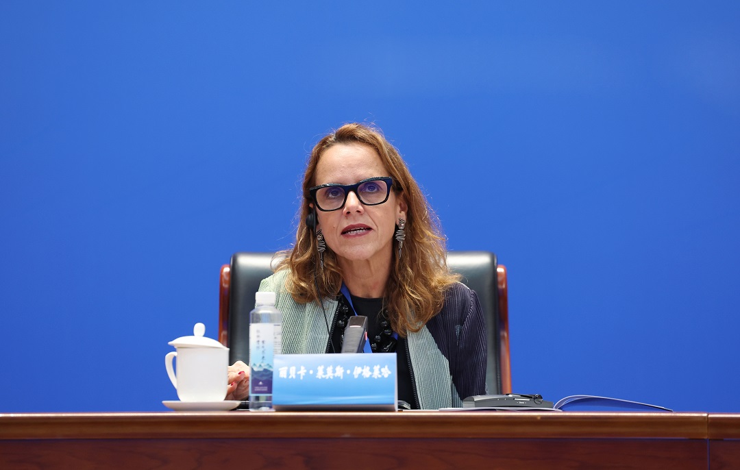 拉丁美洲社会科学院秘书长丽贝卡·莱莫斯·伊格莱哈致辞。记者 朱高磊/摄
