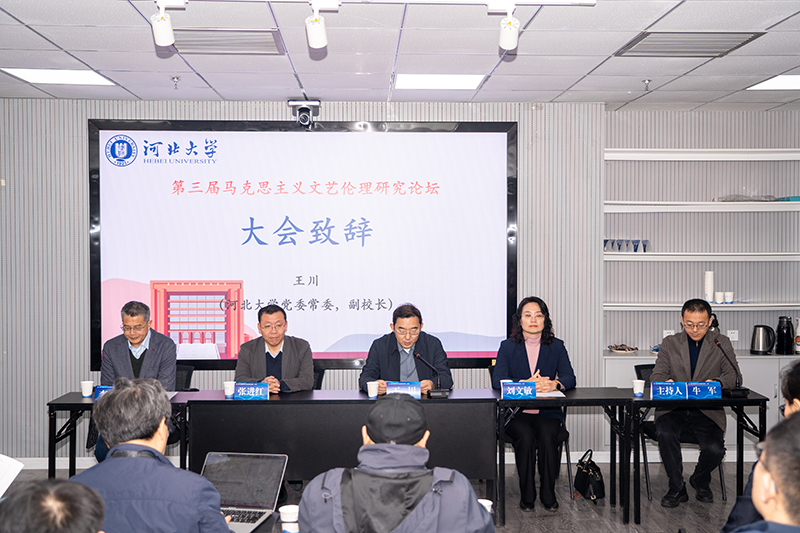 10月24至26日,第三届马克思主义文艺伦理研究论坛在河北大学举行。论坛由河北大学文学院、“马克思主义文艺伦理研究”团队主办,《河北大学学报》(哲社版)编辑部合办。河北大学党委常委、副校长王川,河北大学文学院党委书记刘文敏,河北大学哲学社会科学研究院院长张进红,河北大学文学院文艺学学科带头人李进书等出席开幕式。开幕式由河北师范大学文学院教授牛军主持。