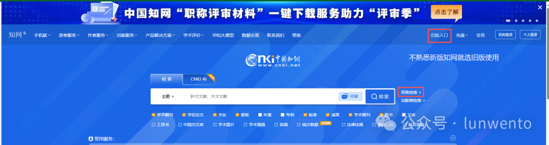 在旧版知网首页点击“高级检索”,可进入设置更详细检索条件的页面。