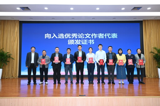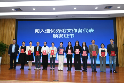 与会领导向入选优秀论文作者代表颁发证书(记者吴楠/摄)