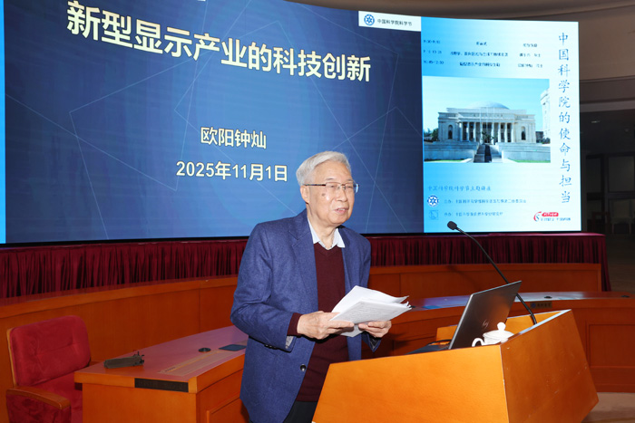 欧阳钟灿以《新型显示产业的科技创新》为题,讲述我国显示产业从追赶到引领的历程。数据显示,内地显示面板产能从2005年全球4%跃升至如今70%,市场规模破万亿元,实现了“缺芯少屏”到全球领跑的蜕变。他指出,这源于LCD、OLED等核心技术突破及政产学研用协同创新,国家战略指引为产业创新注入动力。