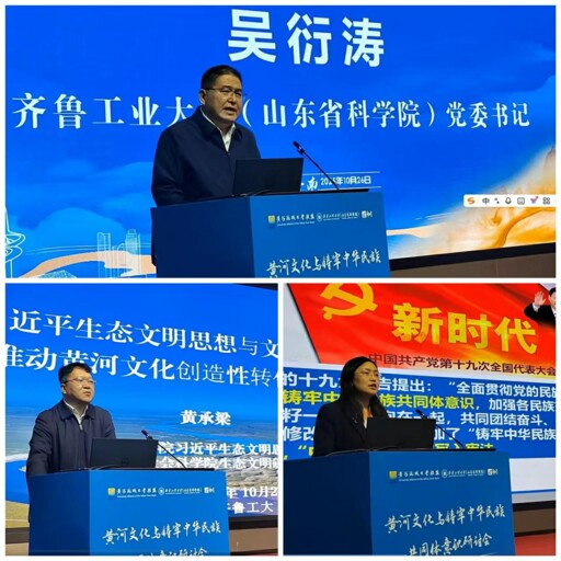 10月26日,黄河文化与铸牢中华民族共同体意识专题研讨在济南举行。会议认真学习贯彻党的二十届四中全会精神,聚焦黄河流域生态保护和高质量发展国家战略,与会学者围绕黄河文化与中华文明起源、铸牢中华民族共同体意识与大思政课建设、数智技术赋能黄河流域生态保护和高质量发展等核心议题展开深入交流研讨。齐鲁工业大学(山东省科学院)党委书记吴衍涛出席会议并致辞。