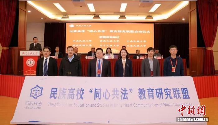 开幕式上举行了民族高校“同心共法”教育研究联盟启动仪式,联盟发起单位包括中央民族大学、西南民族大学、中南民族大学、西北民族大学、北方民族大学、大连民族大学。