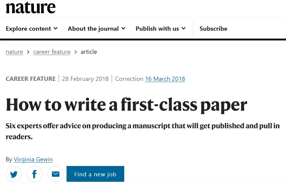 最近,Nature Careers分享了一场题为“How to write a first-class paper”的线上讲座,总结出一整套能让论文从“还行”到“出圈”的写作逻辑。