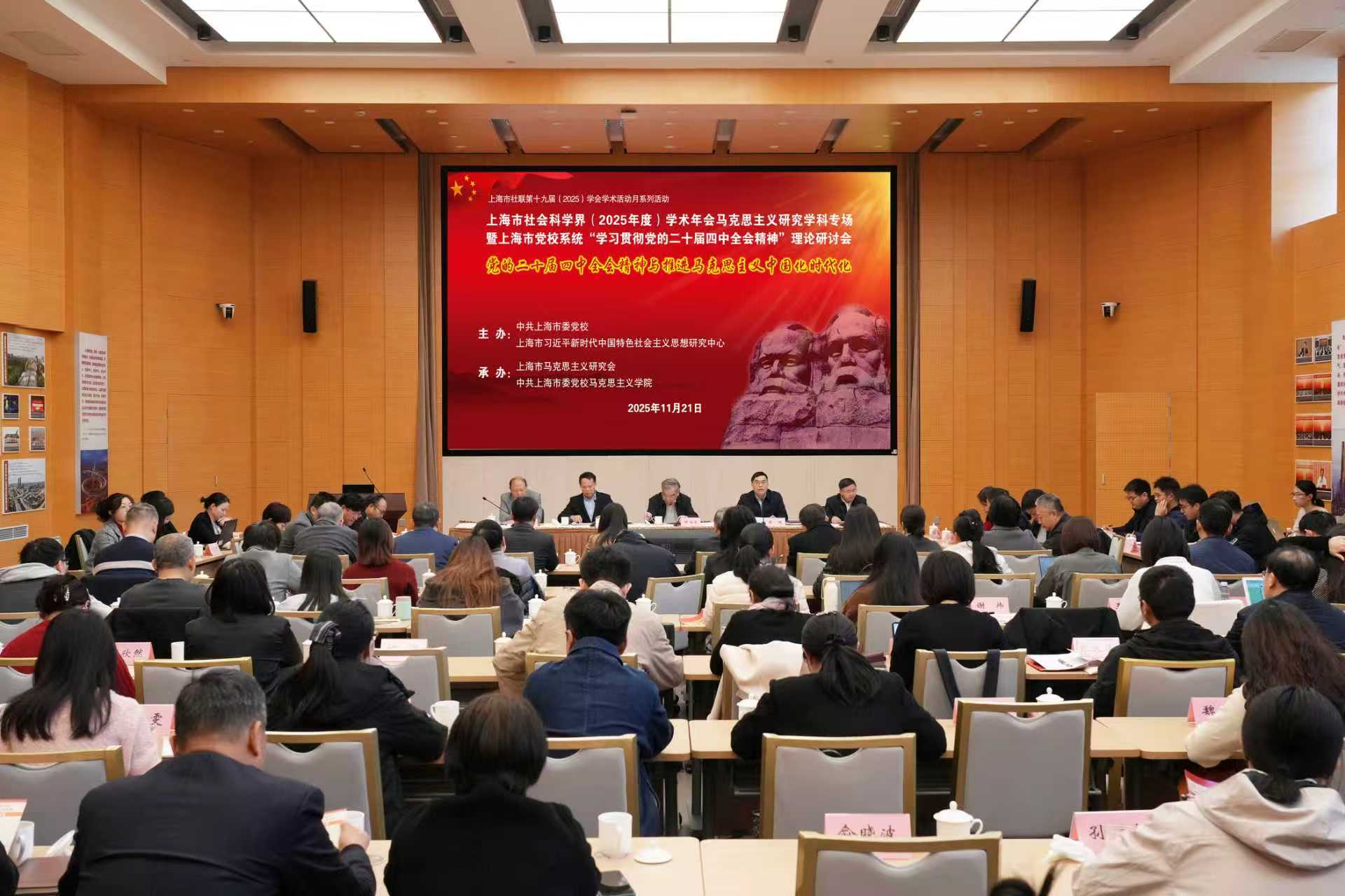11月21日,上海市社会科学界学术年会(2025)马克思主义研究学科专场暨上海市党校系统“学习贯彻党的二十届四中全会精神”理论研讨会在中共上海市委党校(上海行政学院)举行,会议以“党的二十届四中全会精神与推进马克思主义中国化时代化”为主题,汇聚理论界智慧力量,共探全会精神落地路径。