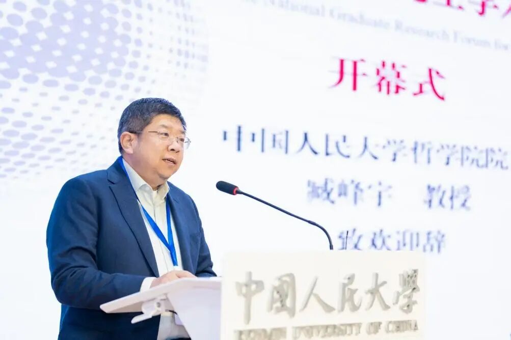 中国人民大学哲学院院长臧峰宇教授致欢迎辞。臧峰宇回顾了全国哲学研究生学术创新论坛的创办历程。该论坛从最初深耕京津两地学术土壤,到实现京津冀区域联动,再到如今面向全国,历经十余载厚重积淀,已成为哲学领域青年学子交流思想、碰撞智慧的重要平台。他表示,愿论坛持续为广大学子提供优质的学术表达与交流机会,助力青年哲学人才成长,并衷心祝愿同学们在未来学术道路上取得佳绩。