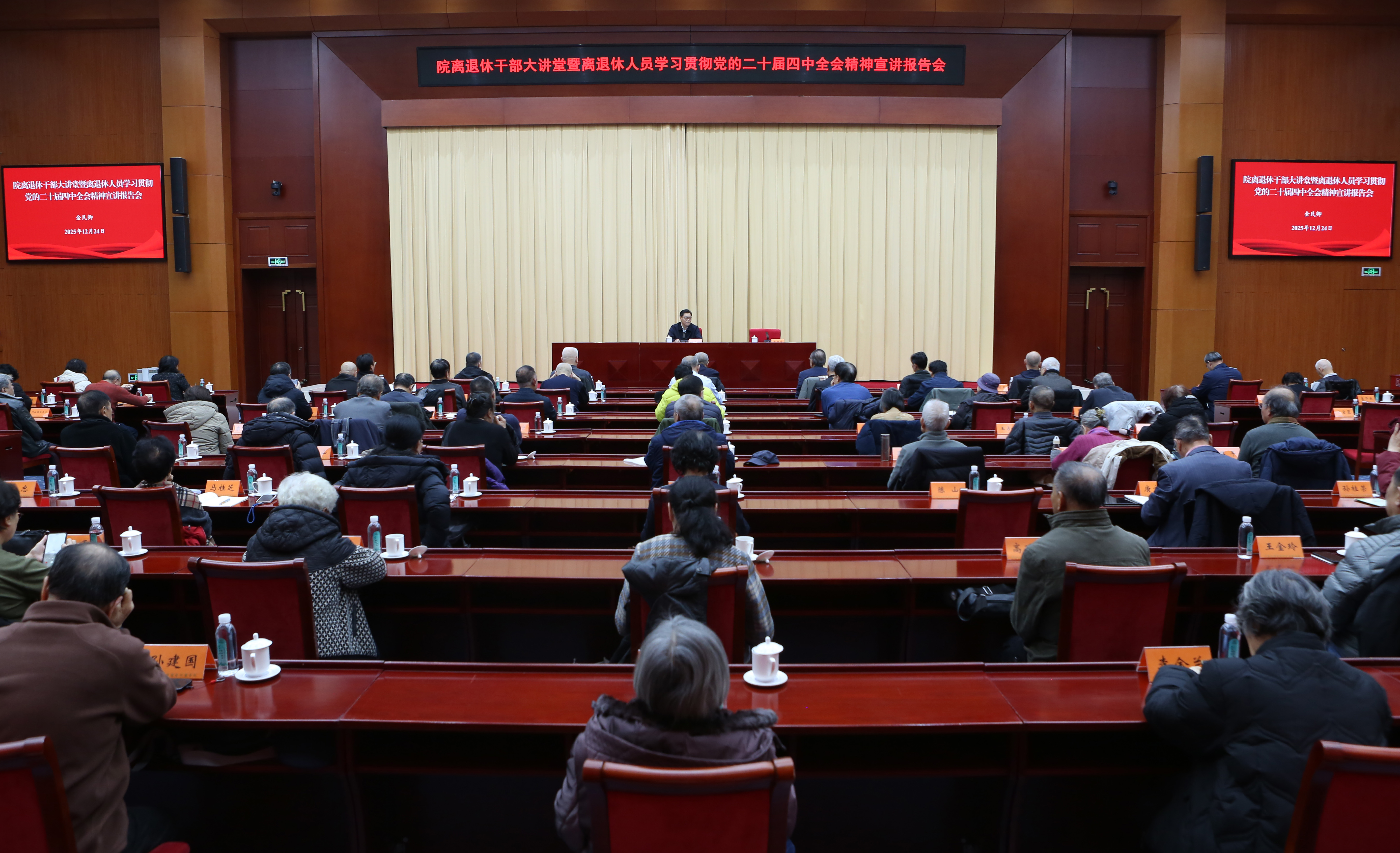 12月24日,“中国社会科学院离退休干部大讲堂暨离退休人员学习贯彻党的二十届四中全会精神报告会”在京举行。中国社会科学院党组成员、当代中国研究所所长金民卿出席并作学习贯彻党的二十届四中全会精神专题报告。