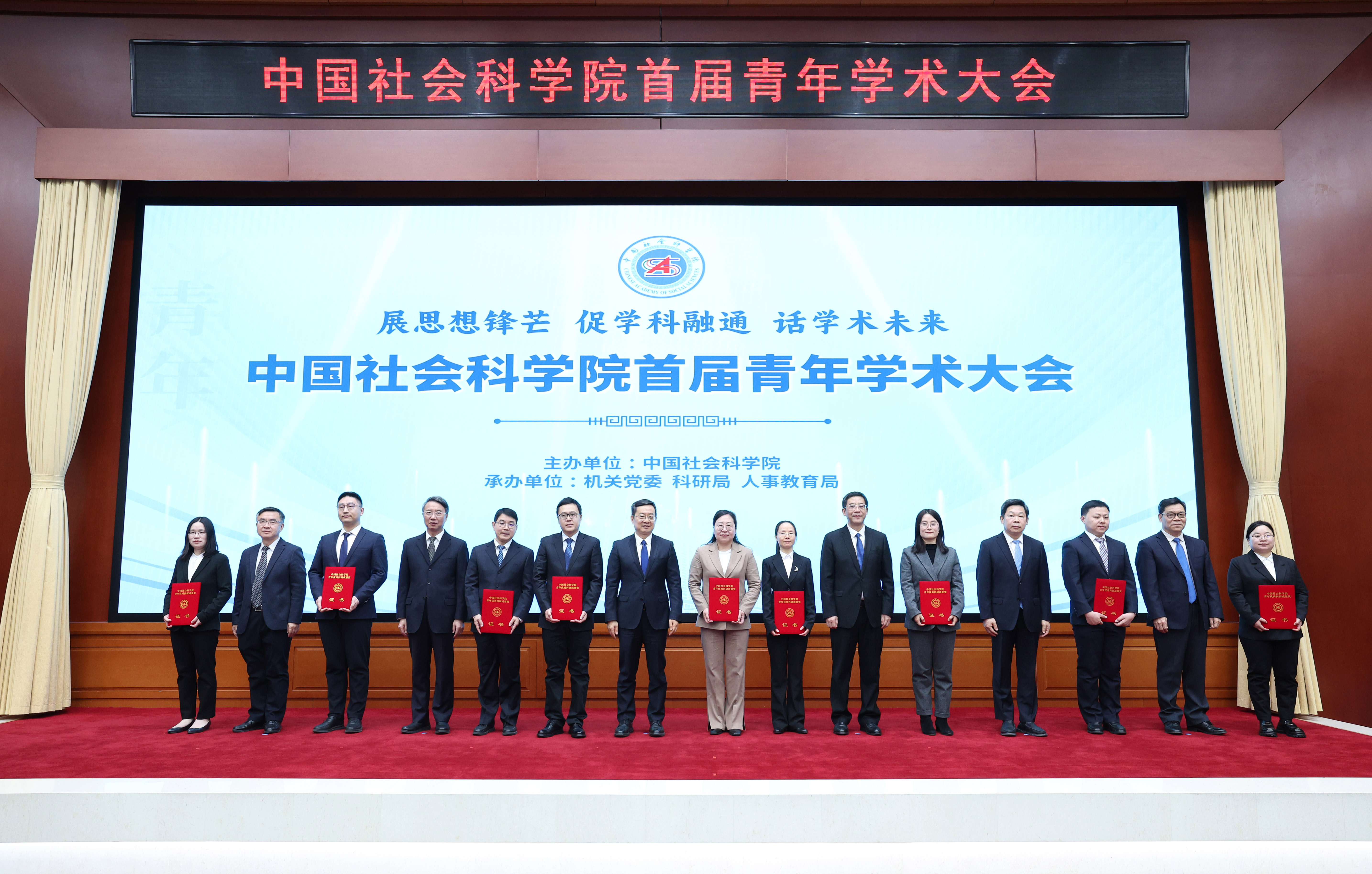 12月29日,中国社会科学院首届青年学术大会在京召开。院长、党组书记高翔出席会议并讲话。副院长、党组副书记彭金辉主持会议。中央纪委国家监委驻院纪检监察组组长、院党组成员杭元祥,秘书长、党组成员赵志敏,副院长、党组成员赵芮,院党组成员、当代中国研究所所长金民卿出席会议。会议公布了第一届中国社会科学院青年优秀科研成果奖获奖名单,院党组成员为获奖代表颁奖。