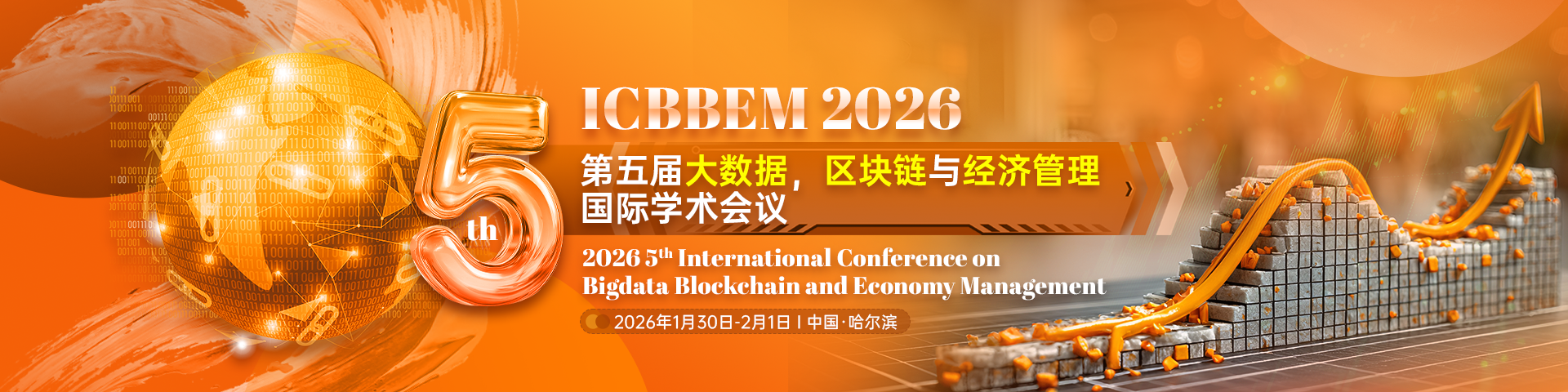 会议简介:第五届大数据、区块链与经济管理国际学术会议(ICBBEM 2026),将于2026年1月30-2月1日在中国哈尔滨召开。会议主题主要围绕大数据、区块链和经济管理等相关研究领域展开讨论,旨在为相关研究方向的专家学者及企业发展人提供一个分享研究成果、讨论存在的问题与挑战、探索前沿科技的国际性合作交流平台。