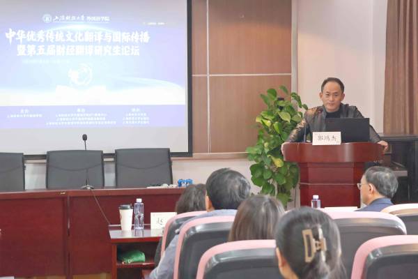 上海财经大学外国语学院院长赵珂教授在致辞中表示,中华优秀传统文化是中华民族的文化根脉,不仅构成中国人思想体系的重要内核,也为回应人类社会面临的共同问题提供了重要价值。推动中国传统文化跨越语言壁垒、有效走向世界,是翻译研究者、翻译教育者和青年学子共同面对的重要课题。上海财经大学外国语学院立足国家战略和时代需求,持续推进翻译理论研究、人才培养与国际传播实践的深度融合。