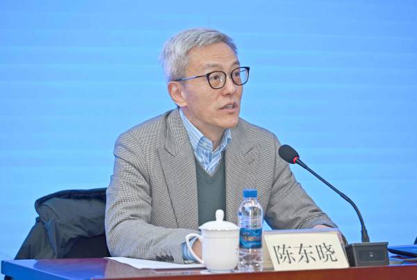 上海市国际关系学会会长、上海国际问题研究院院长陈东晓研究员作报告 记者 陈炼/摄