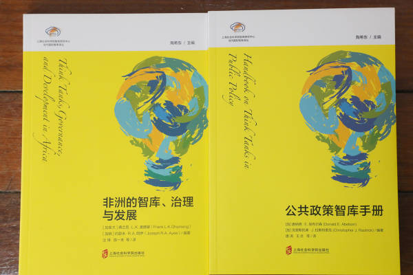 《非洲的智库、治理与发展》《公共政策智库手册》封面 记者 查建国/摄