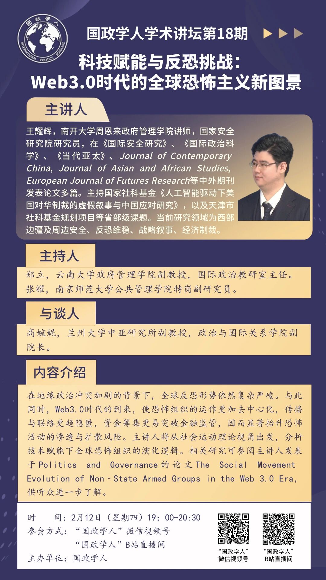 2026/02/12 19:00-20:30 通过“国政学人”微信视频号、“国政学人”B站直播间在线观看