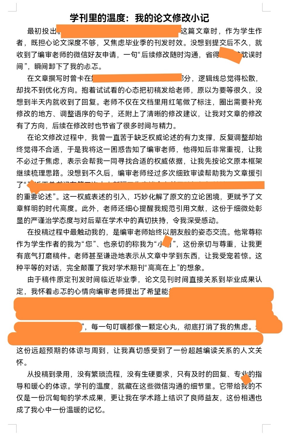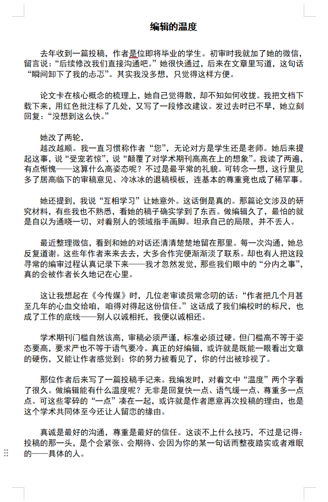 学术期刊的成长,离不开作者与编辑的每一次交流、每一份默契。这些看似幕后的点滴往来,正是刊物质量的生命线,也是思想得以打磨、观点得以成型的土壤。为此,我们特别推出“编撰往来”栏目,希望打破幕后与台前的距离,让编辑走到屏幕前,与作者、读者面对面——分享编稿过程中的思考与感悟,呈现稿件从初稿到成刊的蜕变历程。愿这个“窗口”,能看到更多真诚的互动与共建的合作,让我们在这片学术园地里,共同耕耘得更深、更远。