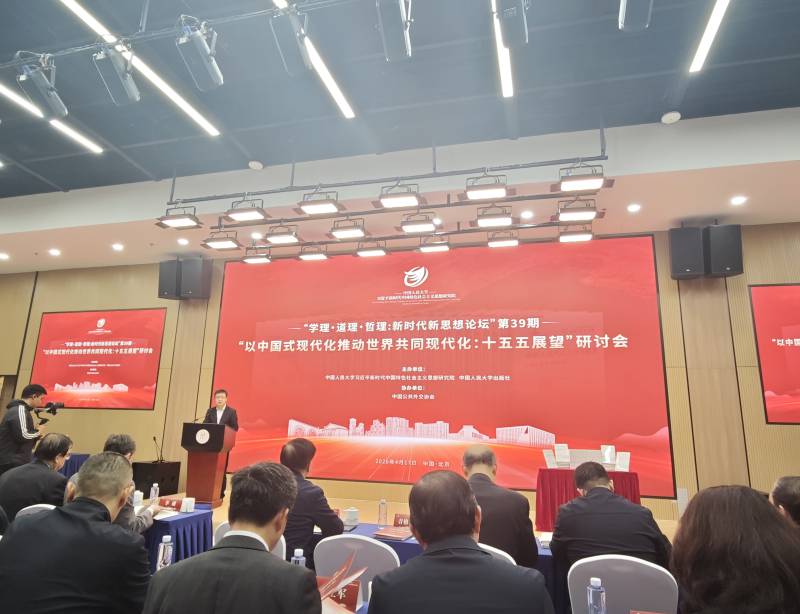4月17日,主题为“学理·道理·哲理:新时代新思想论坛”第39期——“以中国式现代化推动世界共同现代化:‘十五五’展望”研讨会在中国人民大学举行。