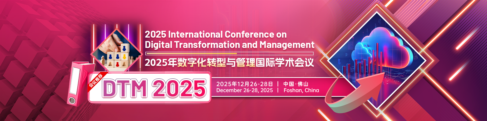 在全球数字经济加速发展的背景下,数字化转型已成为企业、政府及社会组织提升竞争力的核心战略。为探索数字化转型的前沿理论、技术应用与管理实践,促进跨学科、跨领域的国际学术交流,2025年数字化转型与管理国际学术会议(DTM 2025)将于2025年12月26-28日在中国-佛山召开。