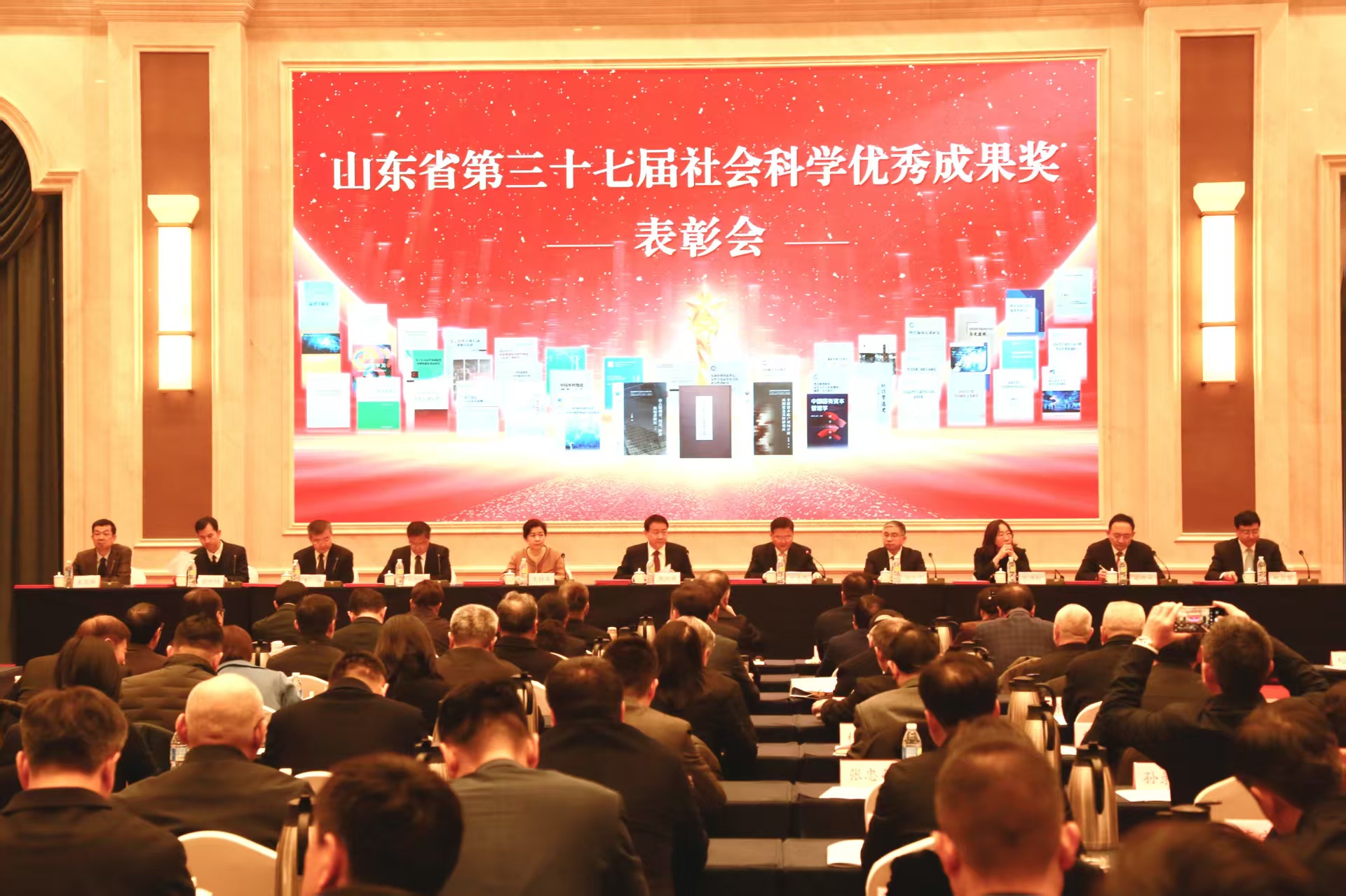 3月9日,山东省第三十七届社会科学优秀成果奖表彰会在济南召开。会议总结成绩、表彰先进,动员和激励全省广大社会科学工作者坚定文化自信、坚持守正创新,高水平述学立论、高质量建言献策,为加快构建中国哲学社会科学自主知识体系、奋力谱写中国式现代化山东篇章作出新的贡献。山东省政协党组成员、省社科联主席唐洲雁出席会议并讲话,山东省社科联党组书记、副主席刘为民主持。