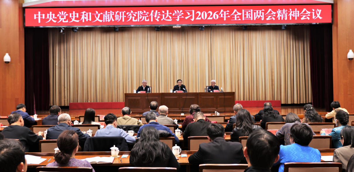 曲青山同志在主持会议时强调,要结合实际,切实抓好全国两会精神的学习宣传贯彻。要坚持全面系统、融会贯通,把学习贯彻习近平总书记系列重要讲话精神和全国两会精神,同全面学习贯彻党的二十大和二十届历次全会精神,同深入学习贯彻习近平总书记关于树立和践行正确政绩观的重要论述精神,同深入学习贯彻习近平文化思想、习近平总书记关于党史和文献工作的重要论述和重要指示批示精神、2026年全国党史和文献部门主要负责人会议精神等有机结合起来,一体学习领会、一体贯彻落实。要充分发挥我院职能优势,加强对习近平总书记系列重要讲话精神和全国两会精神的研究、阐释和宣传,为全党全国的学习贯彻营造浓厚氛围。要坚持内化于心、外化于行,自觉把习近平总书记系列重要讲话精神贯彻落实到党史和文献工作的各方面全过程。要深入学习贯彻习近平总书记关于“把工作重心放在练好内功、做强自身上”的重要要求,聚焦我院主责主业,牢记首要职责,把编辑好出版好总书记重要著作、阐释好宣传好党的创新理论作为全院工作的重中之重,带动编、研、译、宣各项工作夯实基础、全面发力,高质量履行好党中央赋予的职责使命;要深入学习贯彻习近平总书记关于“好规划和执行力,这两条要结合起来”的重要要求,强化规划引领,统筹我院“二五”规划的贯彻执行和“三五”规划的谋划制定,推动党中央交办的重要任务落实落地;要深入学习贯彻习近平总书记关于“加强革命化专业化人才队伍建设”的重要要求,秉持忠诚、守正、科学、严谨本色,践行政治建院、编研立院、人才强院、从严治院理念,大力加强领导班子和干部队伍建设,教育引导党员干部树立和践行正确政绩观,立足本职工作,勇于担当、真抓实干、奋发进取,不断开创新时代党史和文献工作新局面。