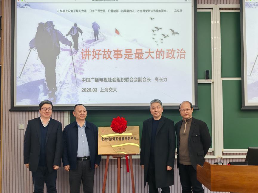 3月25日,上海交通大学媒体与传播学院“党的创新理论传播研究中心”揭牌仪式在闵行校区东中院举行。中国广播电视社会组织联合会副会长、国家广播电视总局宣传司、电视剧司原司长高长力,媒体与传播学院副院长(主持工作)徐剑共同为中心揭牌。校党委宣传部副部长周凯出席仪式并发表致辞。