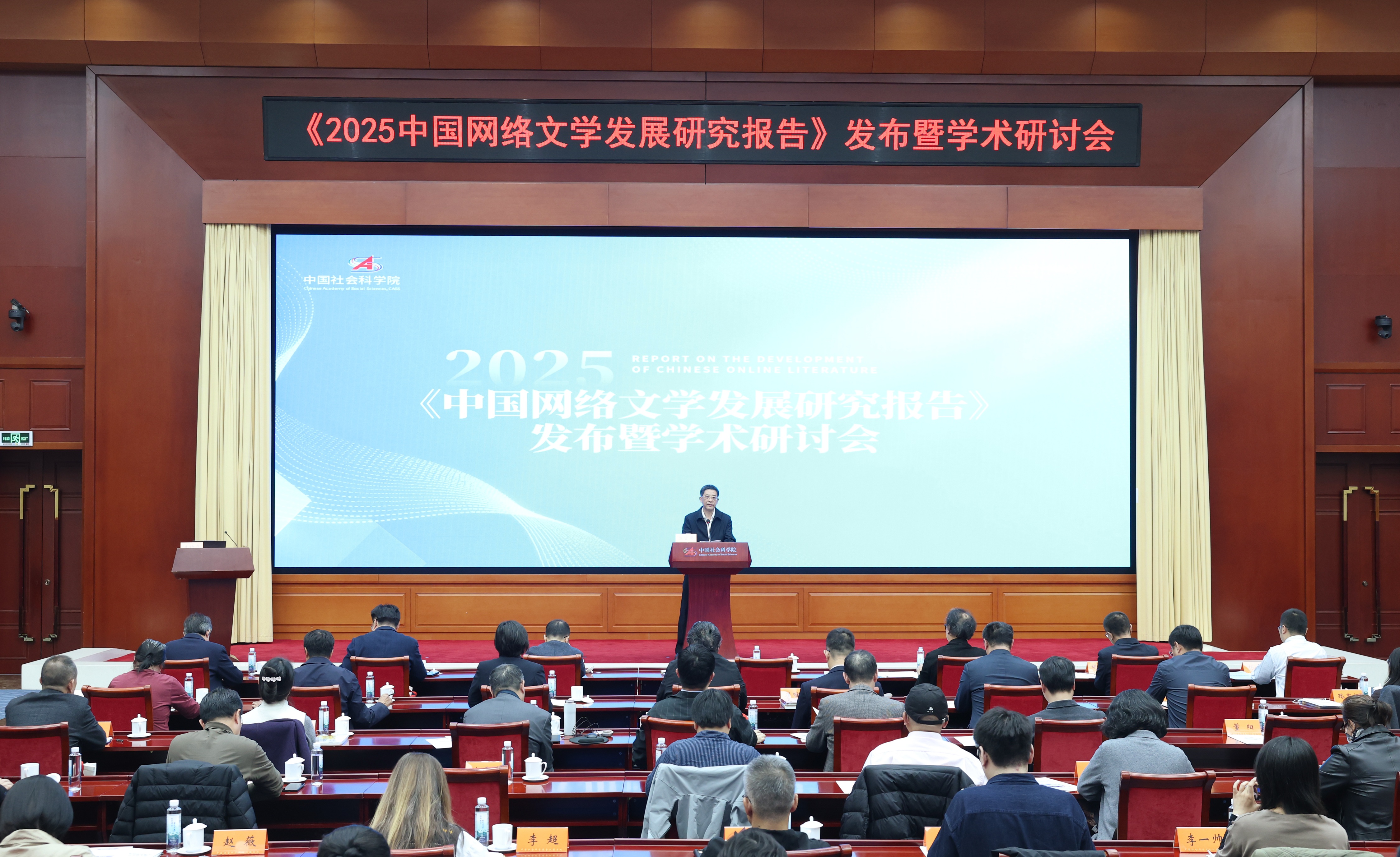 中国社会科学院文学研究所党委书记、所长丁国旗主持发布会。来自国内多个科研单位与高校的专家学者、网络文学行业代表和作者代表参加会议,围绕新大众文艺、网络文学IP改编、网文“出海”、AI与科幻等议题展开学术研讨。会议由中国社会科学院文学研究所主办。会上发布了《青年文学阅读倡议》,倡议各方坚守平台担当,深耕内容质量,推送优质网络文学作品,搭建青年阅读便捷桥梁。