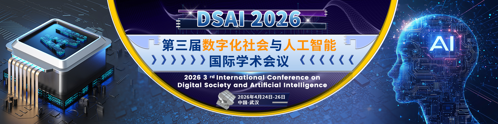 会议简介:数字化社会是数字化、网络化、智能化深度融合的社会。 数字化社会是以构筑全民畅享的数字生活为目标,以数字化、网络化、大数据、人工智能等当代信息科技的快速发展和广泛应用为支撑,通过数据驱动推动产业发展、公共服务以及社会生活等领域数字业态变革型成长,形成全连接、全共享、全融合、全链条的数字社会形态。为了推进数字化社会进程,依托往届成功举办经验,由武汉理工大学主办的第三届数字化社会与人工智能国际学术会议(DSAI 2026)将于2026年4月24-26日在武汉举行。会议主要围绕数字化社会与人工智能等研究领域展开讨论。会议旨在为从事数字化社会与人工智能等研究领域的专家学者、工程技术人员、技术研发人员提供一个共享科研成果和前沿技术,了解学术发展趋势,拓宽研究思路,加强学术研究和探讨,促进学术成果产业化合作的平台。大会诚邀国内外高校、科研机构专家、学者,企业界人士及其他相关人员参会交流!